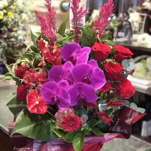 プロポーズや送別に贈る花束が人気で、開店祝いに贈るアレンジメントやスタンド花もご好評いただいております。